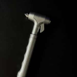 This compact emergency car hammer is designed for quick evacuation in the event of an accident or other emergency situation. The solid steel head reliably breaks through car side glass even at low impact force. A sharply ground seat belt cutter is integrated in the handle to release persons in the vehicle. The ergonomic handle made of strong and durable plastic is designed so that the hammer fits well in the hand and can be handled even in a panic or stress situation. Its compact dimensions (7.5 × 17.5 cm) make it easy to fit in the glove compartment, door or under the seat.